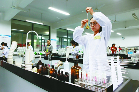 陆旋说,他们在实训基地建设方面的指导思想就是为教学服务、为专业建设服务、为学生服务、为产学结合服务、为社会服务,这是一个开放式的教学培训基地,目前该基地已经完成化学实验室、生物实验室、基础生化实验室、生物资源利用实训室、食品营养与安全实训室、工艺设计实验室、综合检测实训室、仪器分析室、职业资格培训中心等9个实训室建设,该基地不仅可以培养农产品加工技术、食品营养与安全检测、生物制药技术等三类专业技能的高职生,同时也可以向周边高职院校、相关企业提供符合国家食品营养、食品安全、生物技术(农产品精加工)、生物制药企业技术要求及与产品检测工作相适应的实验检测分析环境,能提供考证、考核和实验实训服务,并为周边相关企业提供人员上岗培训、产品检测等服务。此外,野生植物原料加工培训中心、营养师培训中心、食品操作工培训中心和农产品经纪人培训中心建设也是基地建设的重要方面。、