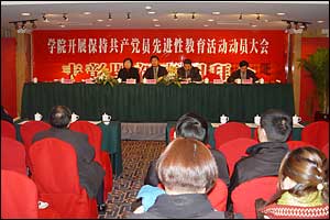 童学敏书记根据中央、省委和省供销社党委的关于开展党员先进性教育活动的指示精神,代表学院党委对我院开展此项活动作了工作部署。他要求全体党员要抓紧时间进行学习,利用寒假自学有关文件和原著。要求领导干部切实做到理论联系实际,认真开展批评与自我批评,在整个教育活动过程中起带头示范作用。要把开展保持党员先进性教育活动同推动当前工作紧密结合起来,做到围绕中心、服务大局、统筹兼顾、合理安排。通过党员先进性教育活动,更有效地推进学院向优秀高职院校迈进。