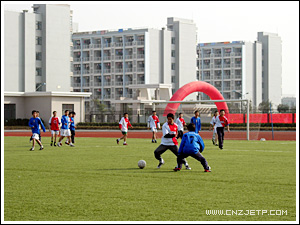 12月13日中午,学院教工足球队与刚刚获得学院首届男子足球赛冠军的工商管理系足球队在体育场进行了一场足球友谊赛。