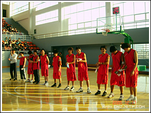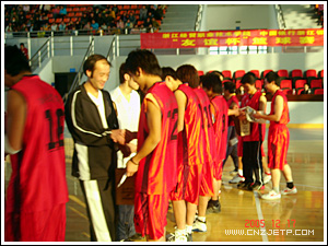 赛前,双方队员互赠礼品,比赛始终在热烈友好的氛围中顺利进行,比赛间歇,现场还进行观众抽奖、礼品派送、篮球宝贝表演、歌手演唱等娱乐节目,赛场气氛一次又一次地被推向高潮。
