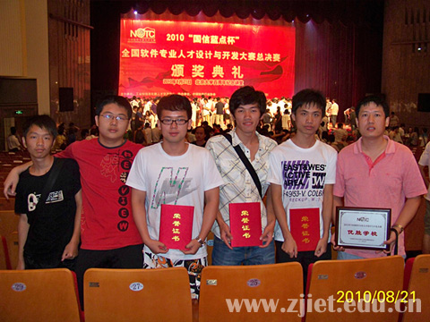 我院软件技术专业的康旭峰、陆洲、张圣博、郑浩仁、吴盈栋等五位同学经过省赛选拔和总决赛比赛,最终获得了优异成绩。其中,康旭峰获得“C语言程序设计”高职高专组一等奖,陆洲获得“JAVA软件开发”高职高专组一等奖,其余三名同学均获得“C语言程序设计”高职高专组三等奖。软件技术专业王昌建和朱颖老师则获得了大赛“优秀指导教师”荣誉称号。由于良好的表现,我院与北京信息科技大学、北京理工大学、青岛大学等院校荣获了大赛“优胜学校”的荣誉称号,并获得了国信蓝点信息技术有限公司提供的价值40万元人民币的“企业定制人才实训就业平台”一套。 全国软件专业人才设计与开发大赛由工业和信息化部人才交流中心主办,北京大学软件与微电子学院承办,中国软件行业协会、教育部高等学校高职高专计算机类专业教学指导委员会协办。本次大赛得到了大连东软信息学院、国信蓝点信息技术有限公司等单位的积极支持。全国50余所院校承担了大赛选拔赛的组织工作。
