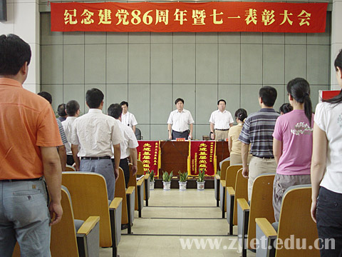6月29日下午,学院在图书馆报告厅举行纪念建党86周年暨七•一表彰大会。大会由学院党委委员、纪委书记潘新华主持,全体在职党员参加了大会。党委委员、副院长周文根宣读表彰文件,党委书记童学敏在会上讲话。