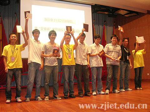 最后,获奖选手依次上台接受证书和奖金,我院“创之旅”团队和 “BACKHOME”团队纷获团队第一名和第三名的好成绩,拿到万元大奖。信息技术系闻春根、程聪、季正伟三名同学则包揽了大赛个人前三名。我院因其在本次大赛中所表现的出色组织能力,被授予“最佳组织奖”。