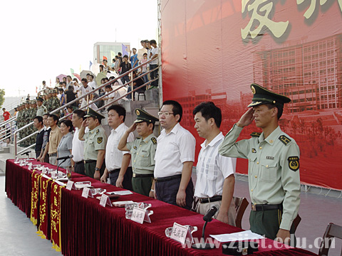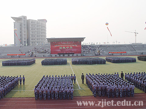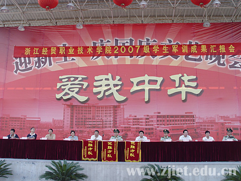9月27日下午,学院2007级学生军训成果汇报大会在田径场隆重召开。武警杭州指挥学院院长施立祥大校、训练部副部长叶少华中校、军训团团长毛庆军少校,学院党委书记童学敏、院长李曙明、党委副书记潘素芳、副院长周文根、副院长卢显林、纪委书记潘新华、副院长王建华等出席汇报大会。大会由学生处处长许兴苗主持。