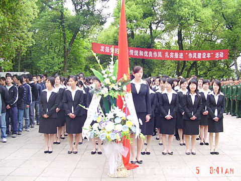 悼念活动参加者除大、中、小学生、军人及其他社会人士外,各级党政领导也均到场悼念。大家都怀着崇敬的心情,有秩序地向革命烈士敬献花圈、花篮。庄严的烈士纪念碑前“革命烈士、永垂不朽”这八个大字,使在场的每个人都肃然起敬。我院学生身穿整齐的套装,跟随着队伍为烈士们献上了花篮,并深怀着真诚的敬意鞠躬默哀,缅怀革命先烈。