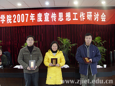 会议对2007年党建和思想政治工作的21篇优秀论文,工商管理系、财务会计系、学生处等3个宣传工作先进集体,高峰等8位宣传工作先进个人,李苗娣等13名宣传工作先进学生分别进行了表彰。六名获奖作者在会上作了论文交流。
