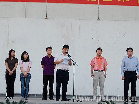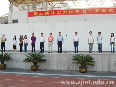开幕式上,吴刚群老师代表学院团委作了讲话。他肯定了近年来学院社团工作取得的成绩,同时对今后社团工作提出了要求。他希望社团建设能在促进校园文化的建设,培养全面发展高素质创新人才和弘扬民族精神等发面发挥更大的作用。之后,团委社团管理中心主任沈丽同学也代表全体社团成员发言。在激昂团歌声中党委宣传部部长潘春胜老师和学生处处长许兴苗老师为本届文化节吉祥物“乐乐”揭幕,党委书记童学敏老师宣布第五届社团文化艺术节开幕。