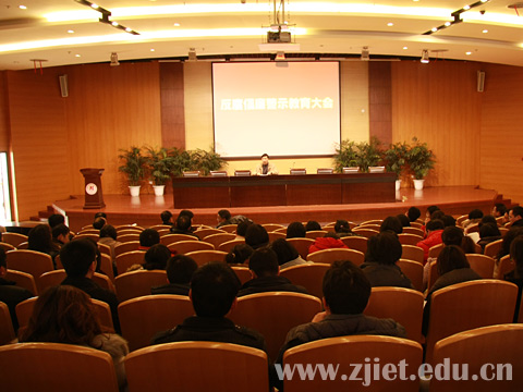 12月22日,学院召开了反腐倡廉警示教育大会,学院领导、全体中层干部、全体党员和财务处、设备处、总务处、图书馆、基建办非党员科级以上干部观看了《梦断敛财路》。《梦断敛财路》通过对原省教育厅高教处处长方永平、浙江省查处原省体育局规划财务处副处长兼基建办副主任何炜、原省监狱管理局管理处处长胡平等一批腐败案件的剖析,从他们的思想作风、学风、工作作风、领导作风、生活作风五个方面深入分析这些领导干部堕落的原因、教训,给人以很强的说服力和震撼力,引发了大家的深思。
