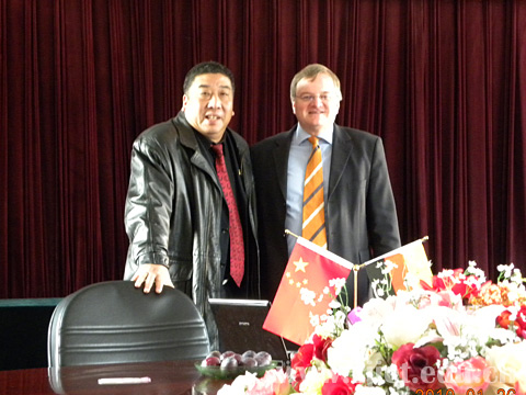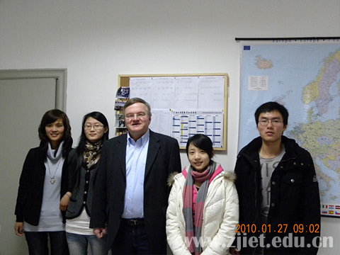 2010年1月25日,德国石荷州经济学院院长Prof. Horst Kasselmann博士来我院访问。期间,就中德合作企业管理专业课程模块建设、学分认证、教师培训等与学院领导进行了会谈。