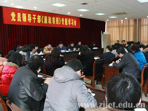 学院纪委书记潘新华同志传达了全省教育系统反腐倡廉工作会议精神。童学敏同志结合胡锦涛总书记在中纪委五次会议上的讲话精神和《廉政准则》8个方面内容的学习,联系学院实际,与与会同志交流了自己的体会。他指出,学院各级领导干部必须透彻领悟《廉政准则》的精神实质,在反腐倡廉工作中起表率作用;要坚持自律和他律相结合,树立自觉接受监督的意识,建立民主监督的机制;要对分管工作和分管部门的党风廉政建设负起责任;要把学院的三期工程建成阳光工程,要加强示范项目建设经费的管理。
