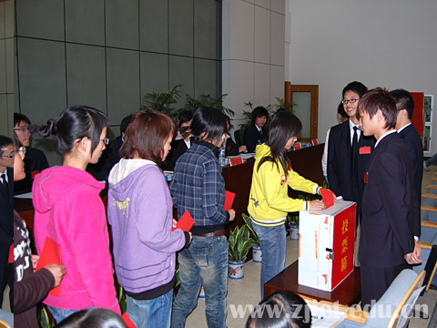 下午2时,在报告厅进行大会选举。学生会13位候选人依次上台演讲。演讲结束后,代表们本着严肃认真的态度投出了自己手中的选票。在全体代表的监督下,经过紧张的唱票和计票工作,大会选举产生了金龙丹等十一位同学成为新一届学生委员会委员。