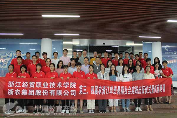 出征仪式上,浙农集团股份有限公司人力资源部钟尧君经理告诉我们:“浙农集团是浙江省供销社本级服务“三农”的骨干企业和全国农资行业的排头兵。根据国家未来农业发展总体规划,公司将进一步推进主营业务的转型升级和产业融合,到十三五末期,争取成为适度多元、区域和行业领先,在全国有一定影响力的综合商贸集团。这就需要大量农资人才,故2015年6月29日公司与经贸学校签订农资营销人才订单培养协议,力争将学生培养成为农业技术扎实、经营技能突出、管理经验丰富的高素质现代化农业技术专家、农业农资经营管理人才和企业家。历经校、企、学员三方共同努力探索,确定了“教、学、实践,1+1+1一体化”的教学培养模式实践,搭建起了农资创新创业成长平台;此次岗前培训我们邀请业内知名的农资营销、技术服务专家为同学们授课,希望能够帮助他们更加自信迎接接下来的实习考验。”
