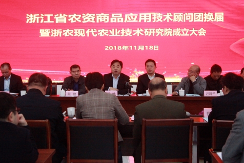 11月18日上午,浙江省农资商品应用技术顾问团换届暨浙农现代农业技术研究院成立大会在浙农瓶窑基地召开。省供销社主任邵峰,省供销社副主任张建,省农科院副院长杨华,省供销社副巡视员徐钢军,以及省农资流通协会会长、副会长单位代表,第七届专家顾问团成员和浙农集团涉农成员企业负责人等60余人参加。
