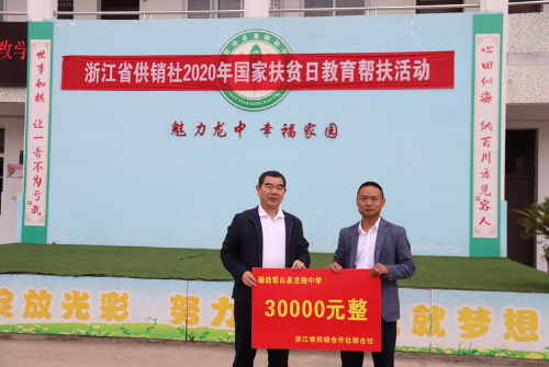 三、教育帮扶暖人心。10月15日,省供销社在常山县球川镇开展教育帮扶捐赠仪式,向龙绕中学捐赠3万元用于改善教学设施。省社领导,社属企业、院校和团工委负责人慰问球川小学、龙绕小学22名低收入农户子女,为他们送上精心挑选的书包、文具、球拍等,鼓励他们要坚定信念、提振信心,好好学习。