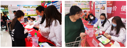 现场活动分两组同时进行。在人流量较多的超市门口,我校志愿者们跟随新区市场监管分局、海关下沙办事处的工作人员一起,为市民们发放食品安全宣传手册,讲解进口食品、冷冻食品以及日常食品选购知识及相关法律法规知识,并现场为市民们开展农药残留、鸡蛋新鲜度、食用油品质的快速检测,居民们将超市刚刚购买的食品交给志愿者们,志愿者们一边操作一边为市民讲解快检的基本原理、操作流程和检测结果,确保了市民的菜篮子安全。