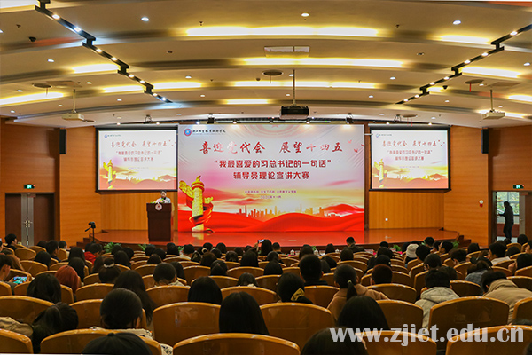 在全校上下深入学习贯彻党的十九届五中全会精神,喜迎学校第三次党代会召开之际,11月25日下午,学校在会议中心举行“我最喜爱的习总书记的一句话”辅导员理论宣讲大赛。党委副书记许宝峰、党委委员、党委宣传部、组织部、统战部部长吴刚群出席大赛。党委宣传部、学工部(团委)、马克思主义学院相关负责人担任评委,各系部学生工作负责人、学生处团委全体教师、全体辅导员及学生代表共400人现场观摩了比赛。