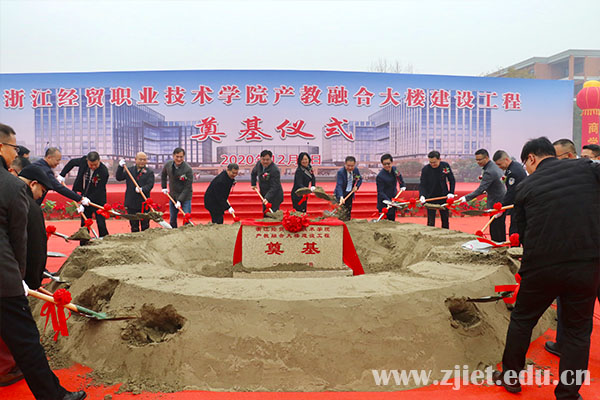 邵峰宣布学校产教融合大楼奠建设工程奠基正式开始。随后,与会领导和嘉宾共同为大楼挥锹奠基。