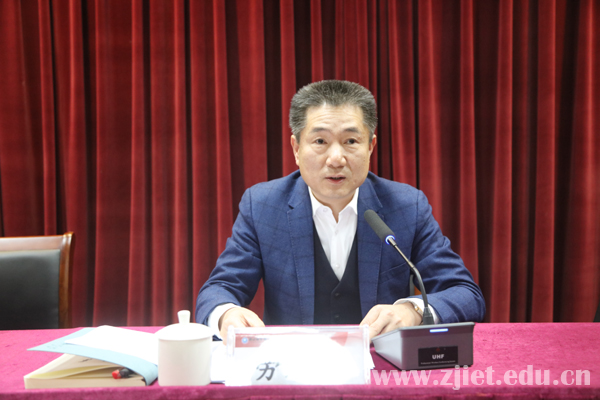 学校党委书记劳赐铭同志代表学校领导班子作2020年度工作述职报告。他指出,2020年,在省社和上级有关部门的正确领导和关心指导下,学校领导班子团结带领全体教职员工坚持以习近平新时代中国特色社会主义思想为指导,落实立德树人根本任务,统筹推进疫情防控和教育教学工作,全力以赴推进国家、省优质校和“双高计划”建设,深化治理体系和治理能力现代化建设,较好完成了年度工作任务。一年来,学校全面落实上级决策部署,着力构建矩阵式防控网络,疫情防控从“应急”向“常态”转变;全面加强党的领导,着力构建融入式党建工作路径,党建效能从“活动”向“活力”转变;全面深化教育教学改革,着力深化协同式发展体系,办学水平从“高原”向“高峰”转变;全面落实立德树人根本任务,着力打造桥梁式育人载体,育人工作从“四育”向“五育”转变;全面应对“新冠”疫情冲击,着力打造立体式服务平台,招生就业从“被动”向“主动”转变;全面实施擦亮金名片工程,着力增强开放式办学程度,社会服务从“串联” 向“并联”转变;全面深化体制机制改革,着力推进阶梯式人才培育,队伍建设从“数量”向“质量”转变;全面推进“清廉经贸”建设,着力营建风景式校园文化,学校运行从“管理”向“治理”转变。同时,劳赐铭客观分析了学校发展存在的问题和不足,并表示,2021年学校将坚定一个“主心骨”,画好一个“同心圆”,唱好一个“主旋律”,奋力推动学校事业再“高八度”,以优异成绩向建党百年献礼。