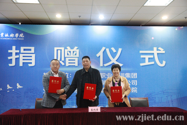 本次捐赠,是学校办学历史上获得的最大数额的社会捐赠,为学校“十四五”起步发展迎来“开门红”,为进一步推动学校教育事业实现新一轮高质量发展注入了“新动力”。捐赠仪式上,杭州西湖职业培训集团董事长毛益飞、杭州豪富制衣有限公司董事长查洁君分别代表捐赠方致辞。学校校长陈德泉、副校长蒋丽君分别代表学校、教育发展基金会与杭州西湖职业培训集团、杭州豪富制衣有限公司签订捐赠协议。