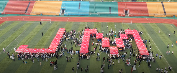 田径场上“JM”字样的摊位摆放气势恢宏,为游园会提供了平台。各社团通过精彩纷呈、特色鲜明的活动对社团建设成果进行了展示,现场人潮涌动,受到全校师生广泛好评。