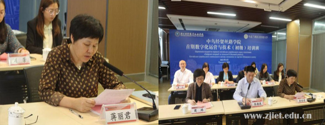 陈德泉代表学校致辞。他指出,学校电子商务专业群作为中国特色高水平专业群,一直致力于开发不同地区的国际化专业标准和课程标准,开展面向亚太地区的电子商务培训项目,输出国际领先的电子商务运营技术,积极打造了服务“一带一路”倡议的电子商务职业教育品牌。本次培训是学校首次面向欧洲国家开展电商培训,意味着学校电商专业群教学资源输出的受众地区进一步扩大,专业教学标准的内涵建设再上新的台阶,也充分彰显了学校服务“一带一路”倡议、推动沿线国家共同构建“职业教育共同体”的信念。他希望,通过此次培训,双方能够进一步完善中乌经贸丝路学院合作机制,拓展合作领域,增进合作友谊,充分发挥中乌经贸丝路学院的抱团优势,为乌方学校和企业培养一批专业技术过硬、适应区域经济发展的高素质技术技能人才,更好地促进中乌经贸丝路学院本土化人才培养和国际产教融合发展。