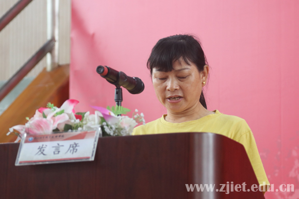 计算机181班刘连超母亲作为毕业生家长代表发言,她对学校三年来的温暖照顾和深切关怀深表谢意,抒发了作为后勤员工见证孩子们成长和学校发展的喜悦和激动之情,希望全体毕业生发扬经贸教职员工的敬业奉献、关爱他人的精神,为社会作贡献,为母校争光。