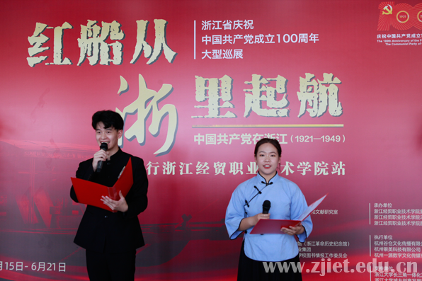 6月15日,《红船从“浙”里起航——中国共产党在浙江(1921—1949)》大型巡展经贸站在学校图书馆正式启动,学校党政领导班子、党总支书记、副书记,分管学生工作的中层干部、党校第65期培训班学员代表参加了启动仪式,并进行了现场参观体验。
