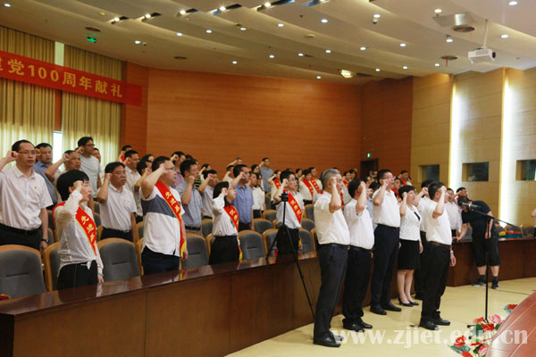 会上,在劳赐铭书记领誓下,新发展党员入党宣誓,全体与会党员重温入党誓词。大家面对党旗,用铿锵有力的声音表达着对党的忠诚及为共产主义事业奋斗终身的决心。