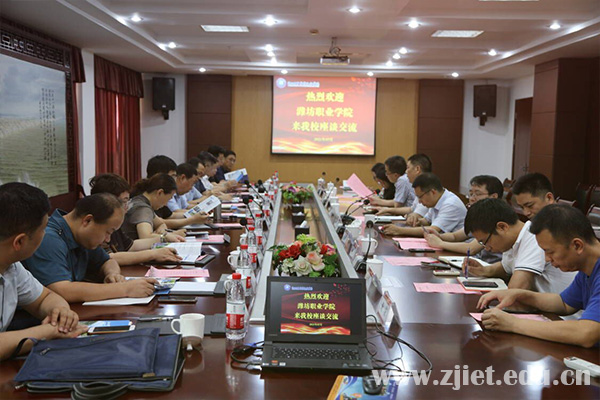 7月20日,潍坊职业学院党委副书记、副校长桑福岭一行11人来我校考察交流。学校党委副书记、校长陈德泉热情接待了来访客人,学校相关部门负责人参加了座谈。