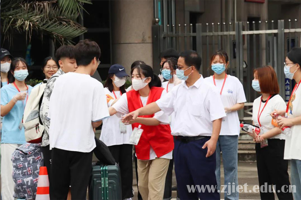 学校为确保疫情防控安全,采取分期、分批次入报到。学校在杭州火车东站、杭州火车南站、杭州汽车客运中心设立了新生接待处,由志愿者引导乘坐地铁;开通迎新大巴,为新生及家长提供接站服务。学校采取“家长不进校,学生自报到”的方式,新生入校前须出示杭州健康码、通信大数据行程卡、核酸检测报告证明,并进行体温测量,核验通过后方可入校,用心织密织牢校园疫情防控网,守牢每一道关口。