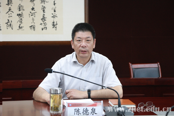 陈德泉详细介绍了学校办学基本情况和取得的成绩。他指出,近年来,钱塘区和学校以2019年签订的区校战略合作协议为框架,开展了深入广泛的合作,实现了双方在教育、科技、人才、文化等领域的深度融合和联动发展,成效显著。当前,区校合作即将步入2.0阶段,学校将紧紧围绕钱塘区的优势产业和发展需求,进一步在跨境电子商务、数字化财税金融协作等方面发挥专业特色和人才优势,通过打造产教联盟等平台,为钱塘区的改革发展提供技术、人才、资源支撑,共同构建“区域-学校”共生发展新模式,形成一批质量高、有特色、有辨识度的区校合作项目,实现合作共赢。
