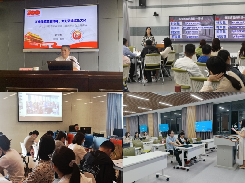 根据青年学员的知识能力结构,立足面向基层开展宣讲的主要特点,本次培训在课程安排上精心设计。一是紧扣党史学习教育宣讲工作重点,特别邀请高校专家浙江理工大学渠长根教授作《准确理解革命精神,大力弘扬红色文化——学习习近平总书记 “七一”重要讲话》报告,让学员先学先悟最新理论成果;二是针对党史宣讲的语言要求,由人文旅游学院院长谢芳老师讲授《党史宣讲的语言策略与要领》,让学员会说会话;三是发挥青年学员信息素养优势,由人文旅游学院李博达老师讲授《新媒体技术等在理论宣讲中的运用与管理》,让学员善学善用先进宣传武器。干货满满的知识输出,让学员们立体塑能,收获颇丰。