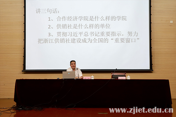 10月19下午,合作经济学院在会议中心举行了供销文化专题讲座,省供销社党委委员、监事会主任童日晖主讲。