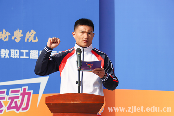 原信息9401班毕业生,现杭州松下公司工会主席,学校1995年-2011年女子1500米、800米两项记录16年保持者邹丽丽代表校友致辞。信息技术学院计算机202班姚诗宇、体育老师吴欢欢老师分别代表本届运动会全体运动员和裁判员宣誓。