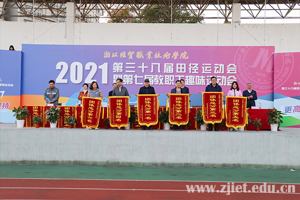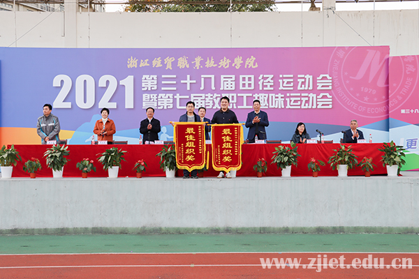 经过激烈角逐,电商与商数队获得学生组团体总分第一名,连锁经营队、食品农产品队分获第二、三名。来自连锁经营队的邓鑫同学荣获最佳男运动员荣誉称号,来自现代文秘队的毛奔腾同学荣获最佳女运动员荣誉称号。人文旅游学院、工商管理学院荣获最佳组织奖。应用工程学院、人文旅游学院代表队分别荣获教工趣味运动会第一、二名。
