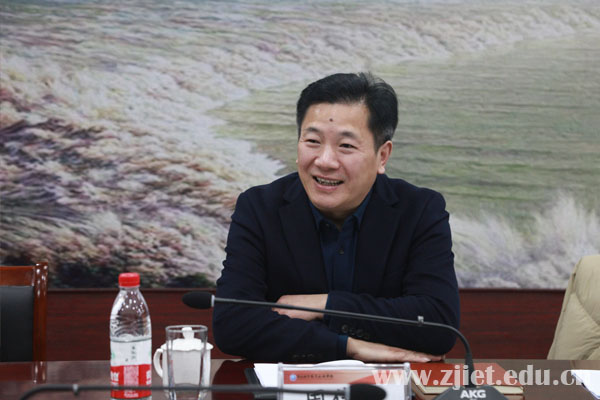 陈德泉介绍了学校的办学历史、办学特色、取得成就及发展瓶颈,并从持续改善办学条件、深化教学改革、推进立德树人、服务行业区域和打造经贸铁军等五方面交流了学校推动高水平职业大学建设的主要举措。他指出,当前我国高职教育全面进入了提质培优、增值赋能、以质图强的新发展时期,学校现有硬件条件与本科层次职业学校建设标准还存在一定的差距,希望区校之间联动进一步加强,集聚优势资源,积极探索共生发展模式,为学校发展创造有利条件,为钱塘区高质量发展注入动力、增添活力,推动双方事业迈上新的台阶。