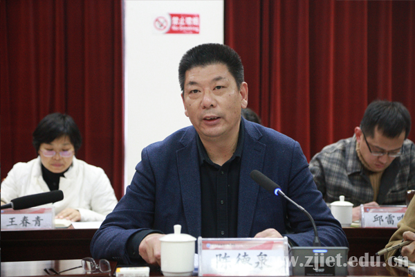 陈德泉校长代表学校表态,对专家组提出的意见和建议,学校将紧盯问题短板,精准施策抓落实;紧盯质量标准,凝心聚力抓改革;紧盯先进标杆,提质培优抓精品。学校将全力以赴推进国家“双高计划”建设,打造更多精品化、标志性职教成果。