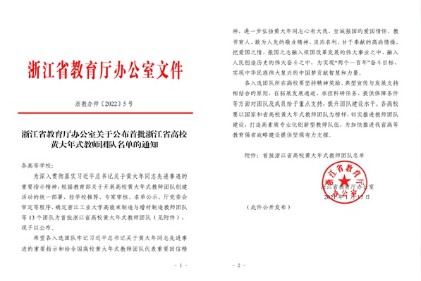为深入贯彻落实习近平总书记关于黄大年同志先进事迹的重要指示精神,根据教育部关于开展高校黄大年式教师团队创建活动的统一部署,浙江省教育厅认定并公布了首批13个“浙江省高校黄大年式教师团队”名单,我校副校长张红教授领衔的“电子商务教师团队”成功入选。