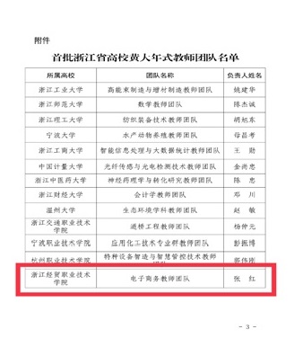 热烈祝贺我校电子商务教师团队入选首批浙江省高校黄大年式教师团队