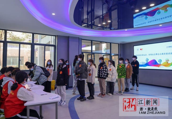 3月1日,杭州各大高校进入杭州亚运会志愿者选拔时间。考官们细致地询问了学生关于志愿者经历等问题,用外语提出了各种突发情况来考核志愿者的处理能力。