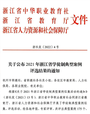 喜报:学校6个案例成功入选2021年浙江省学徒制典型案例