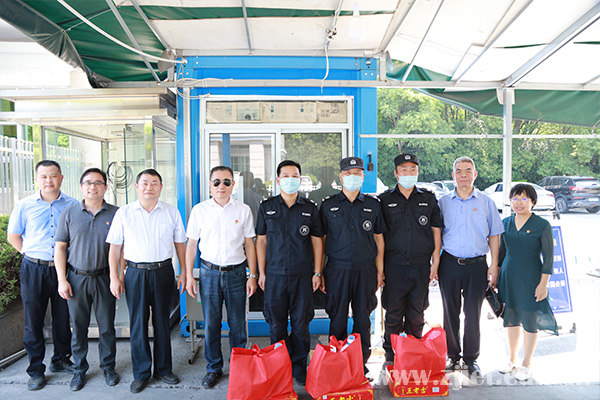 今年入伏以来,杭州持续高温,骄阳似火,酷暑难当。为体现学校对广大奋战在一线员工的关心关爱,学校工会开展了“高温送清凉”活动。8月11日,学校党委书记劳赐铭、校长陈德泉带队慰问坚持在工作岗位上的员工,为大家送去防暑降温慰问品。学校副校长、工会主席何学军,办公室、工会、资产后勤处、保卫处、校园建设处、资产经营公司等部门相关负责人陪同慰问。