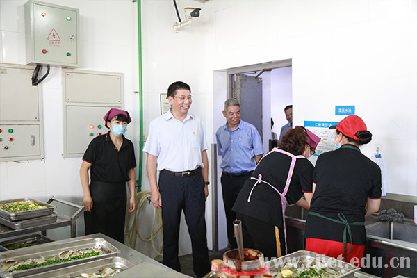 校领导一行先后走访了产教融合大楼工地、学校大门保安室、食堂等地,向建筑工人、保安、保洁、食堂厨师等工作人员亲切询问暑期工作和生活情况,并对他们在暑期始终坚持在一线岗位表示感谢,同时围绕夏季安全生产、防暑降温、疫情防控、饮食卫生等内容,叮嘱大家要始终把生命安全和身体健康放在第一位,做好防暑降温工作。