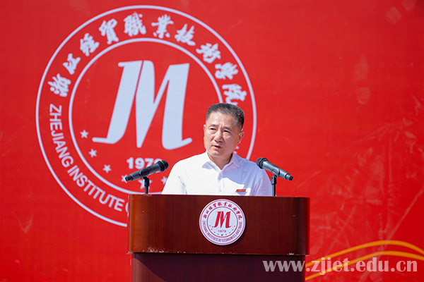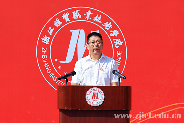 开学典礼在庄严的国歌声中隆重开幕。学校校长陈德泉向新生们的到来表示真挚的欢迎,并以《立技能强国之志让奋斗青春出彩——做一名担当民族复兴大任的新时代青年》为题给全体新生上了一堂“开学第一课”。他希望新“经贸人”志存高远,心怀家国,做一个有理想的新时代青年;珍惜时光,勤奋学习,做一个有本领的新时代青年;脚踏实地,勇于实践,做一个有作为的新时代青年;陶冶情操,锤炼品德,做一个有涵养的新时代青年。他寄语新生切实扛起新时代职教人的使命担当,以青春之我、青春之奋斗,主动融入学校发展,融入国家发展,为中华民族伟大复兴贡献青春力量!