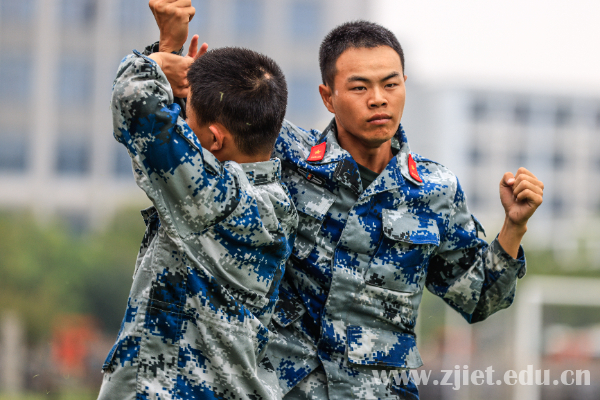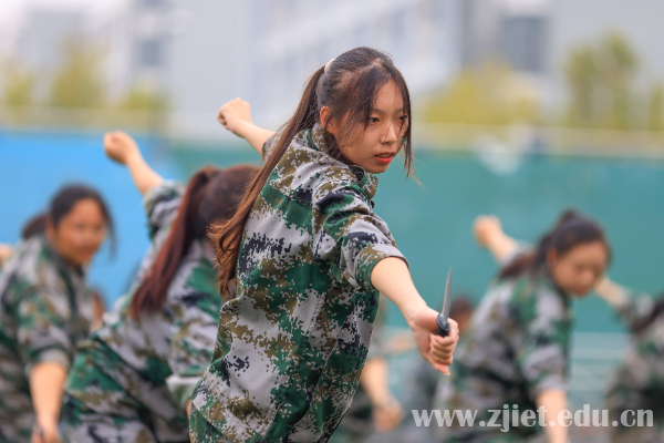 军事技能综合展示在激昂的音乐中震撼上演。团体操方阵依次摆出“喜迎二十大”“奋进征程”等字样,用青春告白祖国。擒敌拳方阵拳拳生风,势如猛虎;棍术方阵身棍合一,行云流水;旗语方阵挥舞青春,激情梦想;女生捕俘刀方阵铿锵有力,展现出巾帼不让须眉的强劲战斗力;战术方阵模拟实战演练,精彩演绎红蓝对抗。全体参演新生以意气风发的英姿,展现出经贸新青年团结、奋进、进取的风貌!