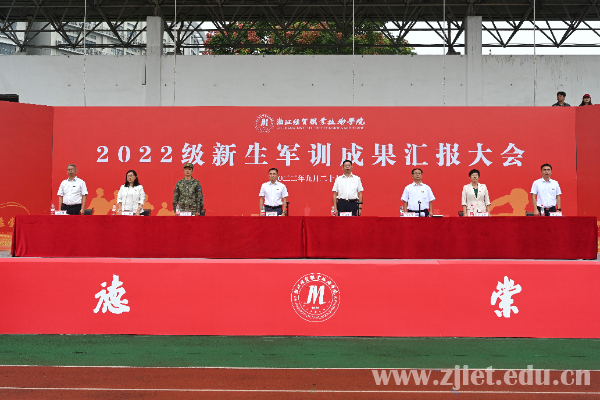 9月29日下午,我校2022级学生军训成果汇报大会在田径场举行。学校党委书记劳赐铭,校长陈德泉,94973部队管理科科长梁孝挺以及其他领导班子成员出席大会。全体中层干部、辅导员、新生班班主任和全体新生参加大会,大会由学校党委副书记许宝峰主持。