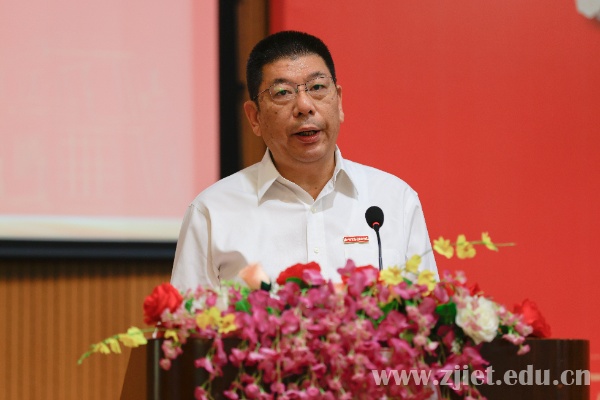 陈德泉致欢迎词,他首先代表学校对各位校友的到来表示欢迎和问候,与校友们一起回顾了母校的光荣历程,向校友们介绍了母校的发展规划。他指出,在党的二十大胜利闭幕、全国上下认真学习宣传贯彻党的二十大精神的重要时刻,学校举行校友返校日更是意义重大,要牢牢把握党的二十大关于职业教育的重要论述,要与学习宣传贯彻习近平总书记关于职业教育的系列重要指示、讲话精神和丰富实践结合起来,推动新时代职业教育高质量发展。他强调,2022年是“十四五”事业发展规划承上启下之年,是建设高水平职业院校工作的关键之年,希望广大校友秉承“厚德崇商”校训,与在校师生一起,集思广益、群策群力、相互勉励,共同担负起推动母校继续大步前进的重任,为母校书写新的荣光贡献新的力量。