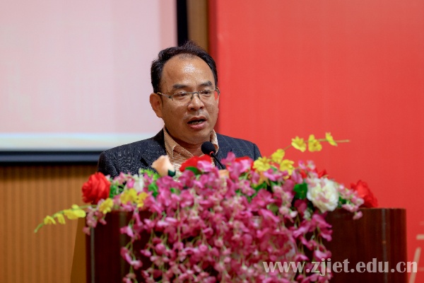 信息技术学院童红斌老师代表教师发言,他深情回顾了当年担任班主任与同学们相处的趣闻轶事,对校友们取得的成绩感到骄傲,并祝福校友们创造更好的未来。校友代表1992届采购与推销专业毕业生、杭州满庭芳食品有限公司总经理丁云伟作发言,他分享了自己与班主任及同班同学合伙创业的成长故事,表达了对母校深深地感恩之情,并表态将继续秉承“厚德崇商”校训努力前行,再创佳绩。