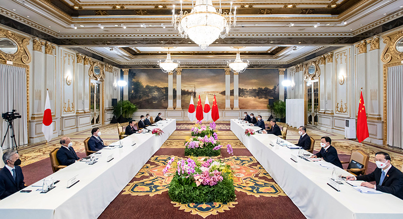 习近平指出,今年,中日双方共同纪念了邦交正常化50周年。50年来,双方先后达成4个政治文件和一系列重要共识,各领域交流合作成果丰硕,给两国人民带来重要福祉,也促进了地区和平、发展、繁荣。中日互为近邻,同为亚洲和世界重要国家,拥有很多共同利益和合作空间。中日关系的重要性没有变,也不会变。中方愿同日方一道,从战略高度把握好两国关系大方向,构建契合新时代要求的中日关系。