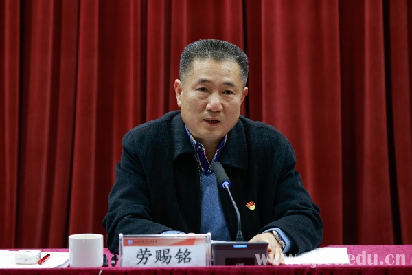 会上,劳赐铭传达了省委教育工委关于做好教育系统安全稳定工作的系列会议精神和工作要求,阐述了学校当前做好安全稳定工作的特殊意义,分析研判了学校存在的隐患风险,对学校做好校园安全稳定工作进行了部署安排。
